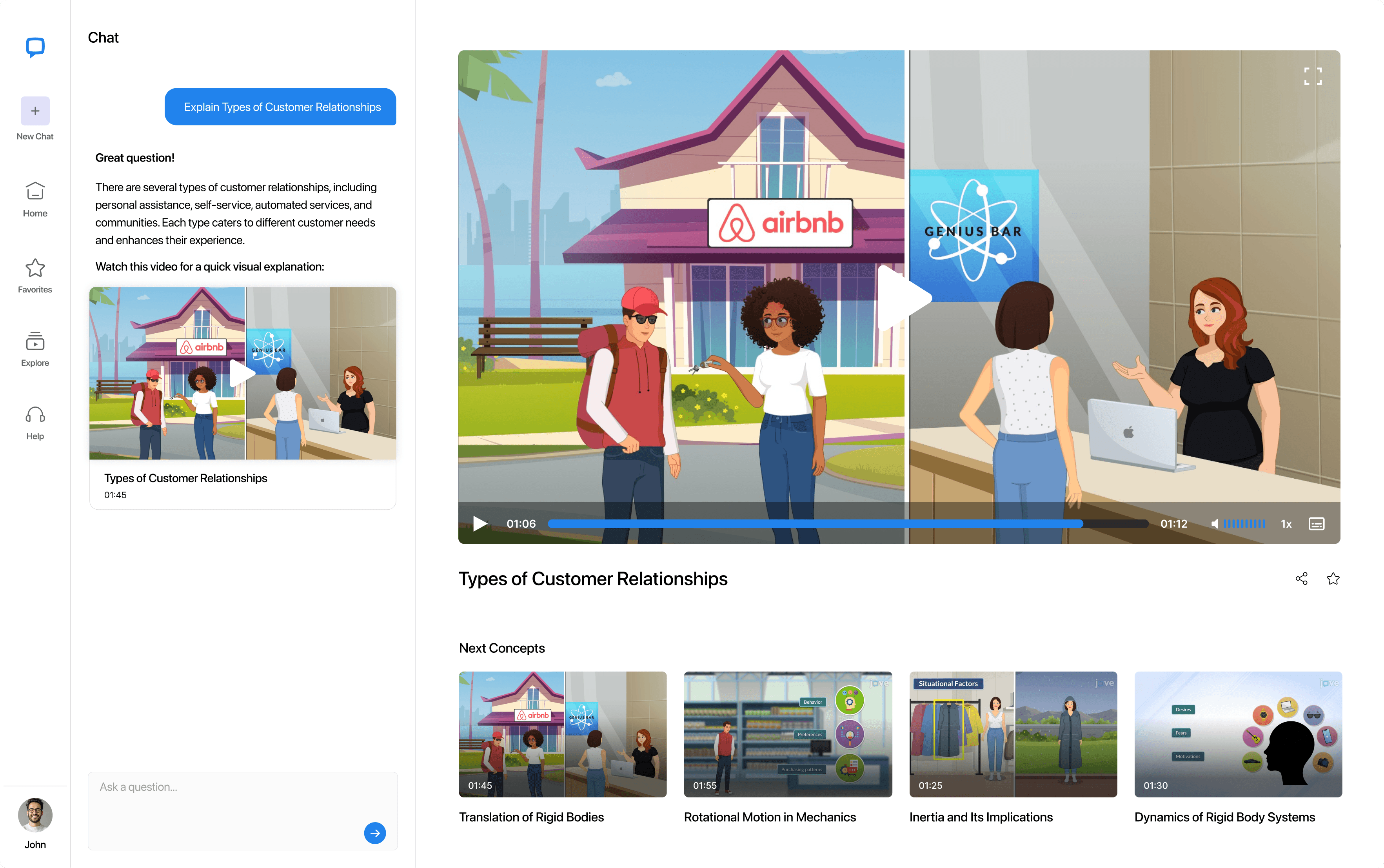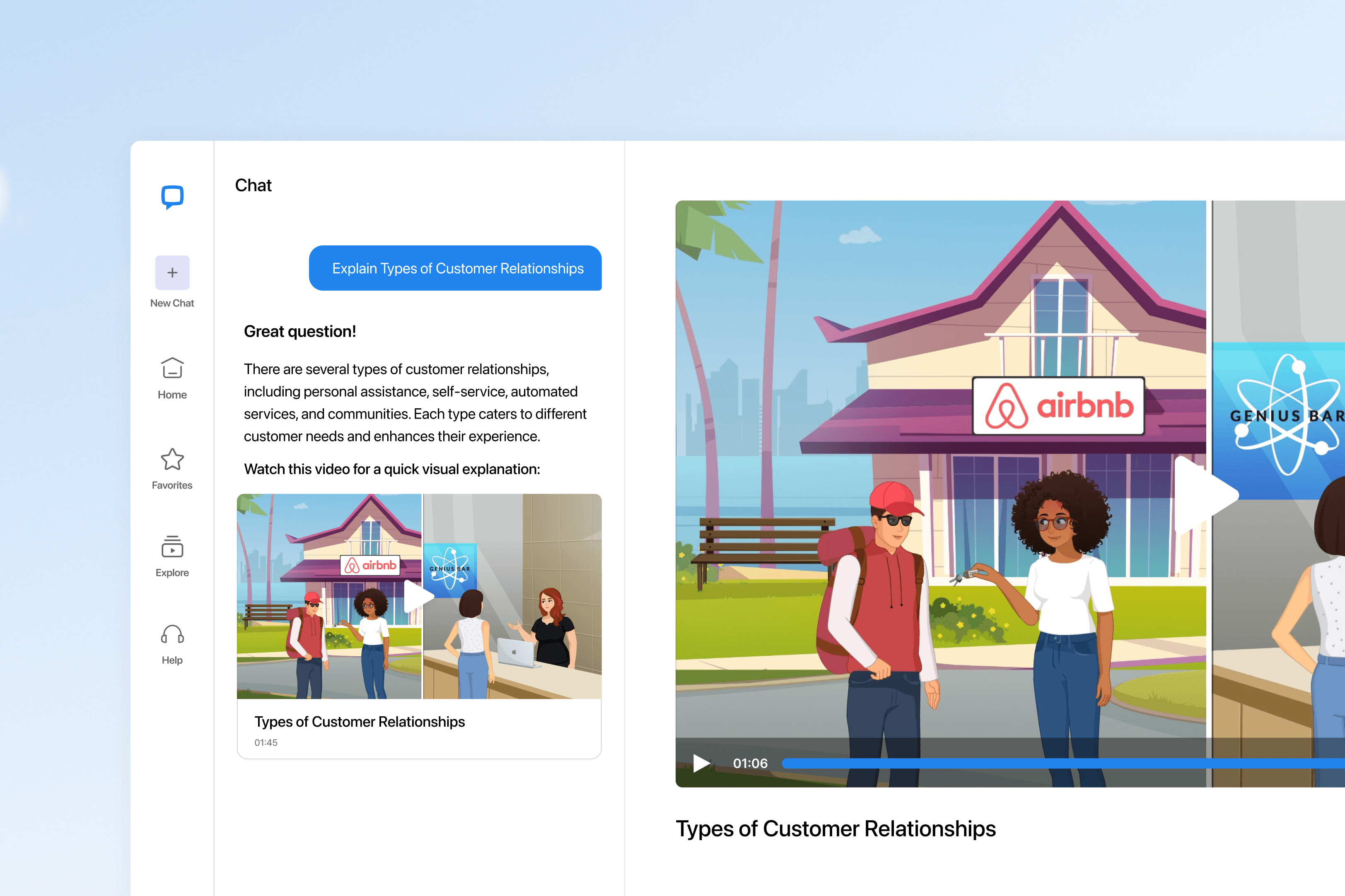 The chat is the learner’s guide — conversational, supportive, and action-oriented. It answers questions, suggests next steps, and keeps context alive. This design drives 35% longer sessions than JoVE’s video-only experience.