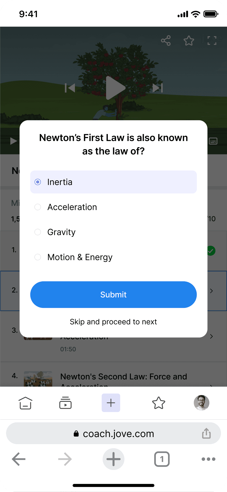 Micro-Course Video — A focused player with embedded quizzes and progress indicators.